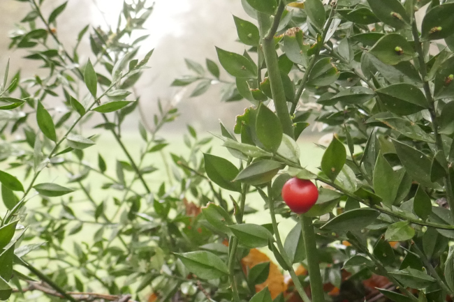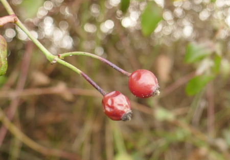 Le cycle des saisons poursuit son cours. Chaque changement de saison donne à redécouvrir sous un nouveau jour des lieux familiers. Redécouvrir, car la météo n’est jamais la même d’une année sur l’autre. Parce qu’en fonction de l’humeur et de l’attention que l’on porte aux paysages, le regard ne se porte pas au même endroit. Ces derniers jours, le mien s’est attardé sur les cynorrhodons, les fruits de l’églantier. Ils passent inaperçus quand on les cherche pas. Mais en marchant, en cherchant à reconnaître tous les fruits que l’on croise sur son chemin, ils se laissent facilement repérer. Ils sont nombreux, leur couleur rouge rehausse les teintes de plus en plus monochromes de ce début d’hiver.