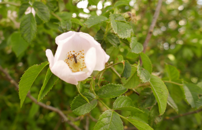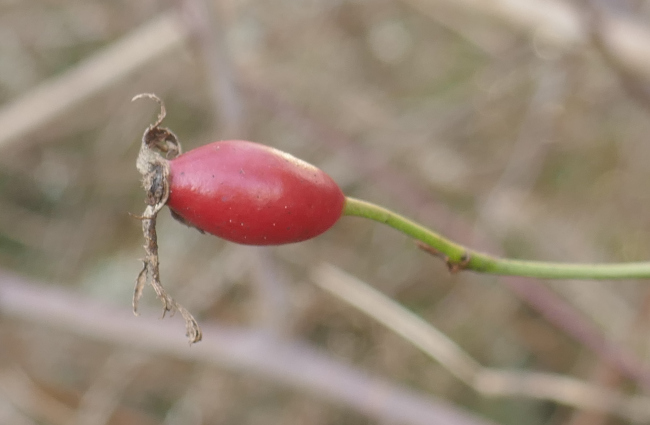Après cette séquence dégustation, place à la botanique. Les choses sont plus compliquées qu’elles n’en ont l’air. Membre de la famille des rosacés, l’églantier (Rosa en latin) est le cousin des rosiers horticoles. Rosa n’est pas une espèce mais un genre. A l’intérieur duquel il existe des dizaines d’espèces. La petite flore de France précise que le genre Rosa comporte, selon les auteurs, 20 à 30 taxons. En précisant qu’ils sont difficiles à identifier, raison pour laquelle elle ne présente que les 6 espèces les plus courantes. N’ayant que les fruits sous les yeux je n’irai pas plus loin dans mes investigations et me contente de constater que les cynorrhodons que j’ai photographiés sont d’une forme nettement différente. J’ai donc probablement croisé deux espèces différentes.